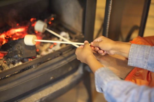 薪ストーブの炎を使ってBIGマシュマロをじっくり温めて、